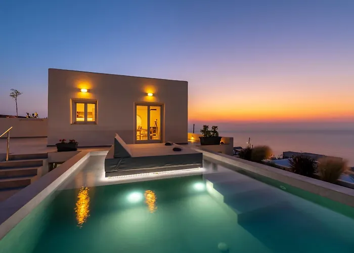 Com acesso a pátio, a Aronia Glow Villa Imerovigli está localizada a 25 minutos a pé do Rochedo de Skaros.